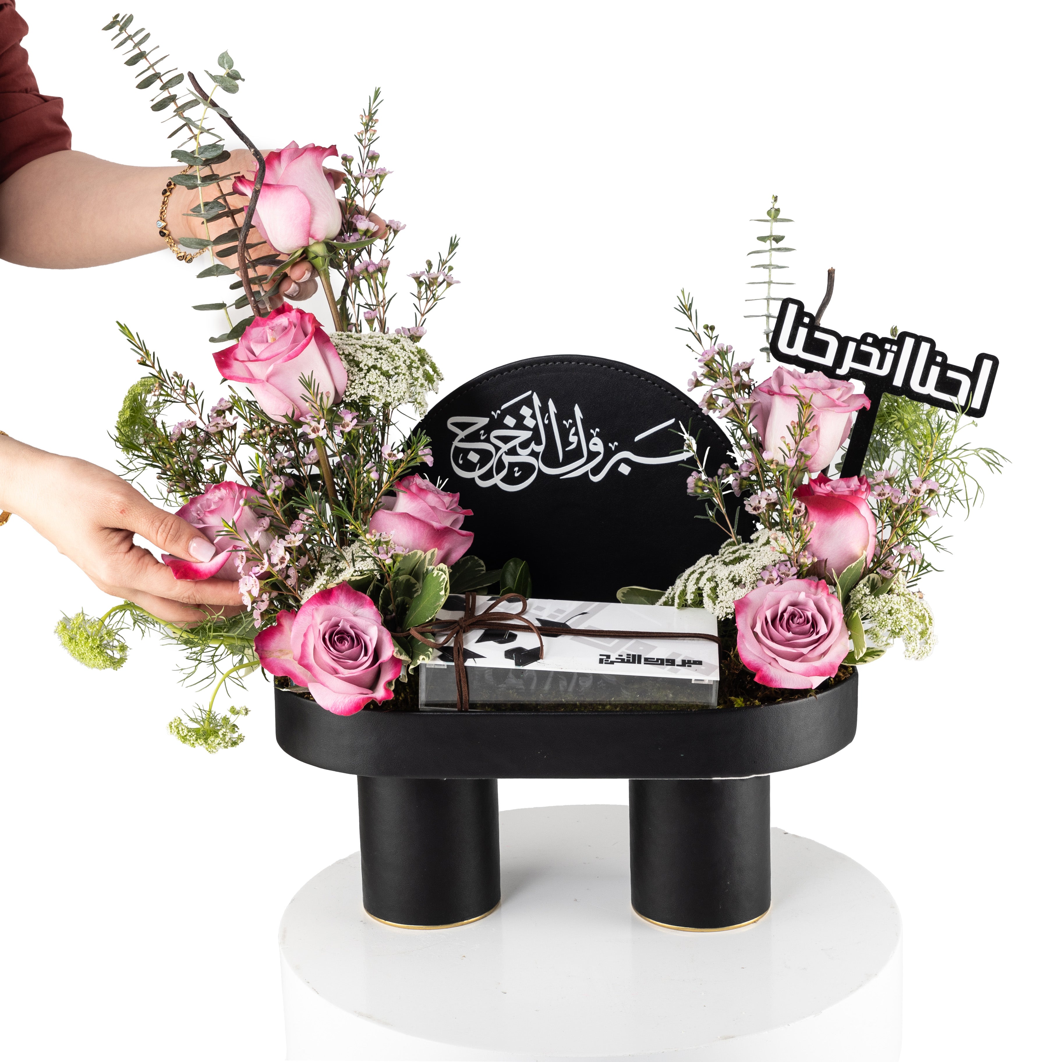 ستاند زهور فاخر مع صندوق نقود – "احنا تخرجنا"