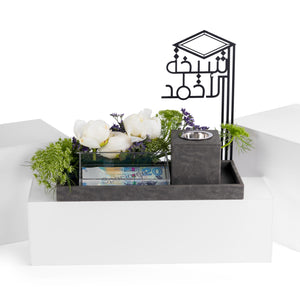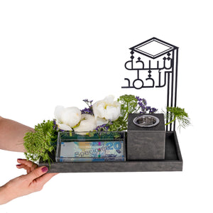 اجعل يوم التخرج مميزاً واستثنائياً مع طقم الخريجين الفاخر المصمم خصيصاً للاحتفال بالمناسبات الخاصة. هذا الطقم يجمع بين الجمال والفائدة في تصميم واحد مذهل. يتكون من باقة من أجمل الورود، مرتبة بأناقة لتضفي لمسة من الجمال والرقي. بالاضافة الى تصميم ستاند أنيق للخريجين، يبرز روح التخرج ويضيف لمسة شخصية مميزة, مع مبخر فخم مثالي لتبخير المكان بأفضل الروائح.
