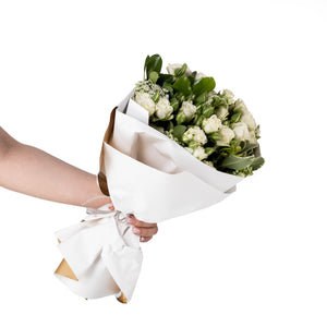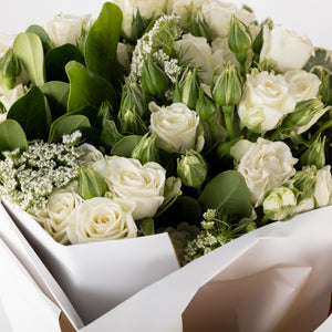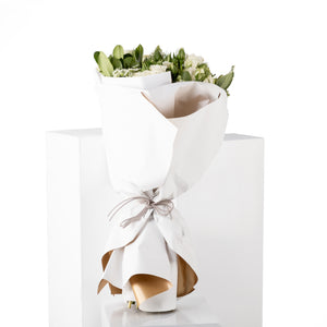 ارفع مستوى أي احتفال مع باقة الورود البيضاء الفاخرة لدينا. تتميز هذه التشكيلة الرائعة بورود بيضاء نقية، ملفوفة بغلاف أنيق باللون الأبيض، مما يخلق تباينًا بصريًا رائعًا.