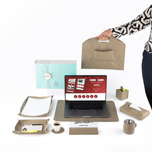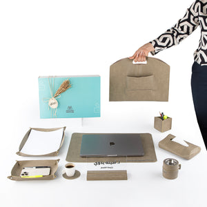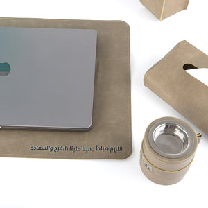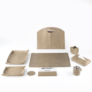 طقم مكتب جلدي فاخر 9 قطع مع بوكس هدايا - رمادي