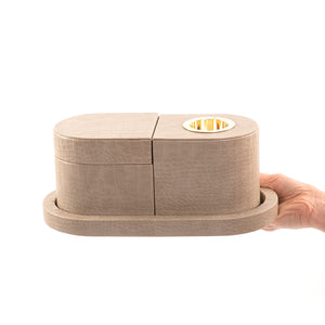 يعزز هذا المبخر الجلد الفريد من عملية حرق البخور في منزلك أو مكتبك بتصميمه البيضاوي الذي يضفي طابعاً من التميز أينما وضعته، وهو مثالي للاستخدام في المنزل أو المكتب أو المتجر لإضفاء رائحة ترحيبية جميلة.