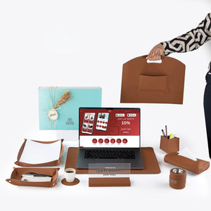Chose the option: طقم مكتب جلدي فاخر 9 قطع مع بوكس هدايا - بني