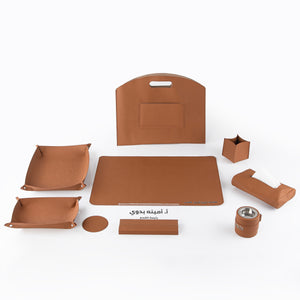 طقم مكتب جلدي فاخر 9 قطع مع بوكس هدايا - بني