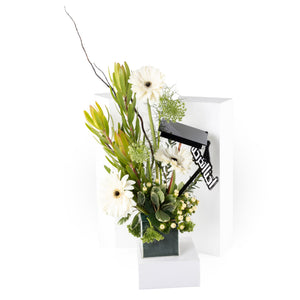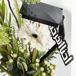 احتفل بهذه اللحظة السعيدة مع تنسيق الزهور الأنيق "احنا اتخرجنا"، تتكون من قاعدة أكريليك مزودة بعصا أكريليك سوداء بارزة مكتوب عليها باللون الأبيض كلمة "احنا تخرجنا"، لتضفي لمسة شخصية ومبهجة.