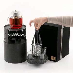 احظَ بالسحر مع طقم الدوه المايكرو 1X2قطعة تدمج بين الأناقة والإتقان لتعكسها في أركان بيتك وخيمتك مثالية للاستخدام بموسم الشتاء. كما أنها مصنوعة من المعدن و قاعده من الجلد بالاضافه الى 4 استكانات شاي مع 4 فناجين قهوه , تأتي الدوة في بوكس هدايا رائع، مع إمكانية إضافة إسم إهداء.