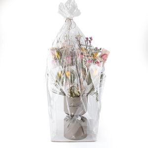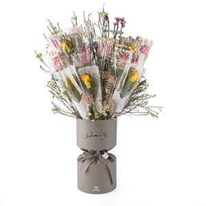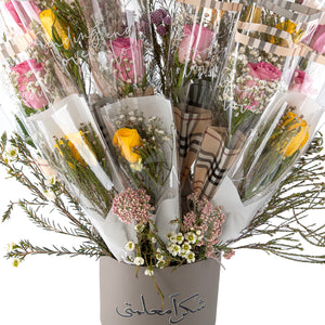 صندوق هدايا على شكل ساعة رملية، مغلف بالجلد، يحتوي على ٢٠ وردة. مغلف بجلد ناعم وفاخر بلون البرقوق، ومزين بورود رقيقة لإضفاء لمسة أنثوية راقية. مثالي لتقديم هدية أنيقة، يعكس ذوقًا رفيعًا واهتمامًا بالتفاصيل.