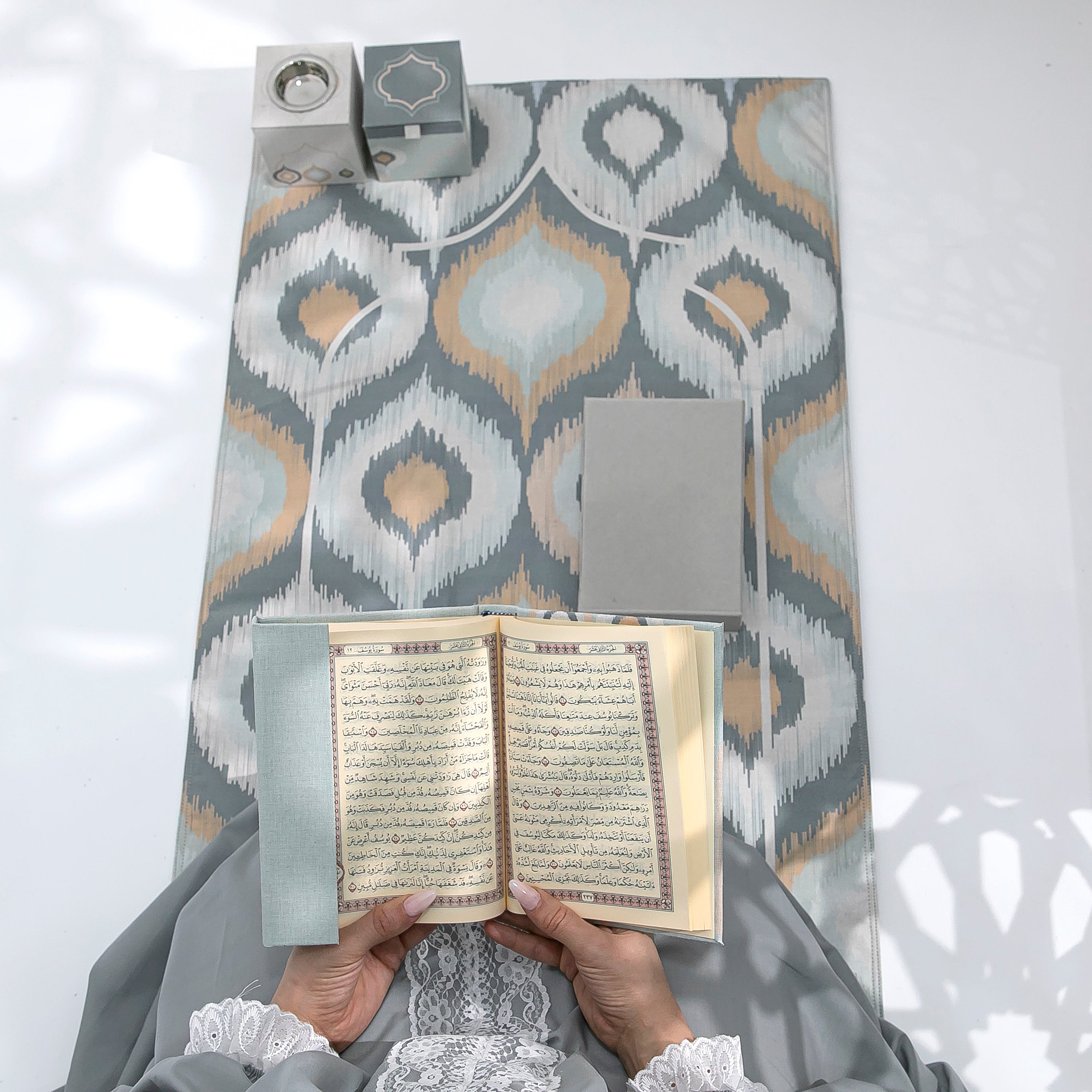 الصلاة هجرة روحية يطوي الانسان فيها فواصل البعد بينه وبين الله ,لذلك صممنا هذا الطقم شامل به كل ما تحتاجه للتعبد بكل ايمان وتخشع