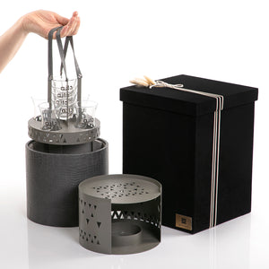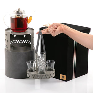 احظَ بالسحر مع طقم الدوه المايكرو 1X2قطعة تدمج بين الأناقة والإتقان لتعكسها في أركان بيتك وخيمتك مثالية للاستخدام بموسم الشتاء. كما أنها مصنوعة من المعدن و قاعده من الجلد بالاضافه الى 4 استكانات شاي مع 4 فناجين قهوه , تأتي الدوة في بوكس هدايا رائع، مع إمكانية إضافة إسم إهداء.
