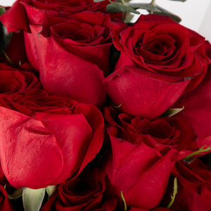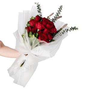 استمتع بجمال باقة الورود الحمراء الكلاسيكية الخالدة، مزيج مثالي من الأناقة والرقي. تتميز هذه التشكيلة الرائعة بورود حمراء نابضة بالحياة، ملفوفة بعناية في غلاف أبيض أنيق، مما يخلق تباينًا رائعًا يضيف لمسة من الفخامة إلى أي مناسبة.