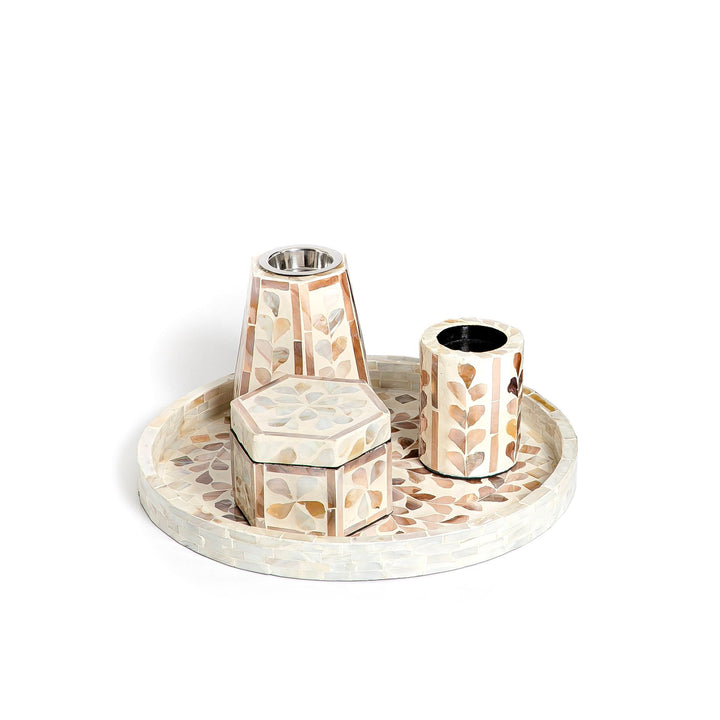 Mubkhar Set Of 4 Pieces (Tray + Box + Mubkhar + Candle Holder)