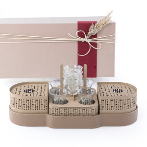 عملية بلأستخدام و مصنوعة من خامات عالية الجودة من المعدن و الجلد الأنيق و تأتي مع صندوق هدايا فاخر حتي تليق بمجالس تعرف أن الجمال يكمن بالتفاصيل.