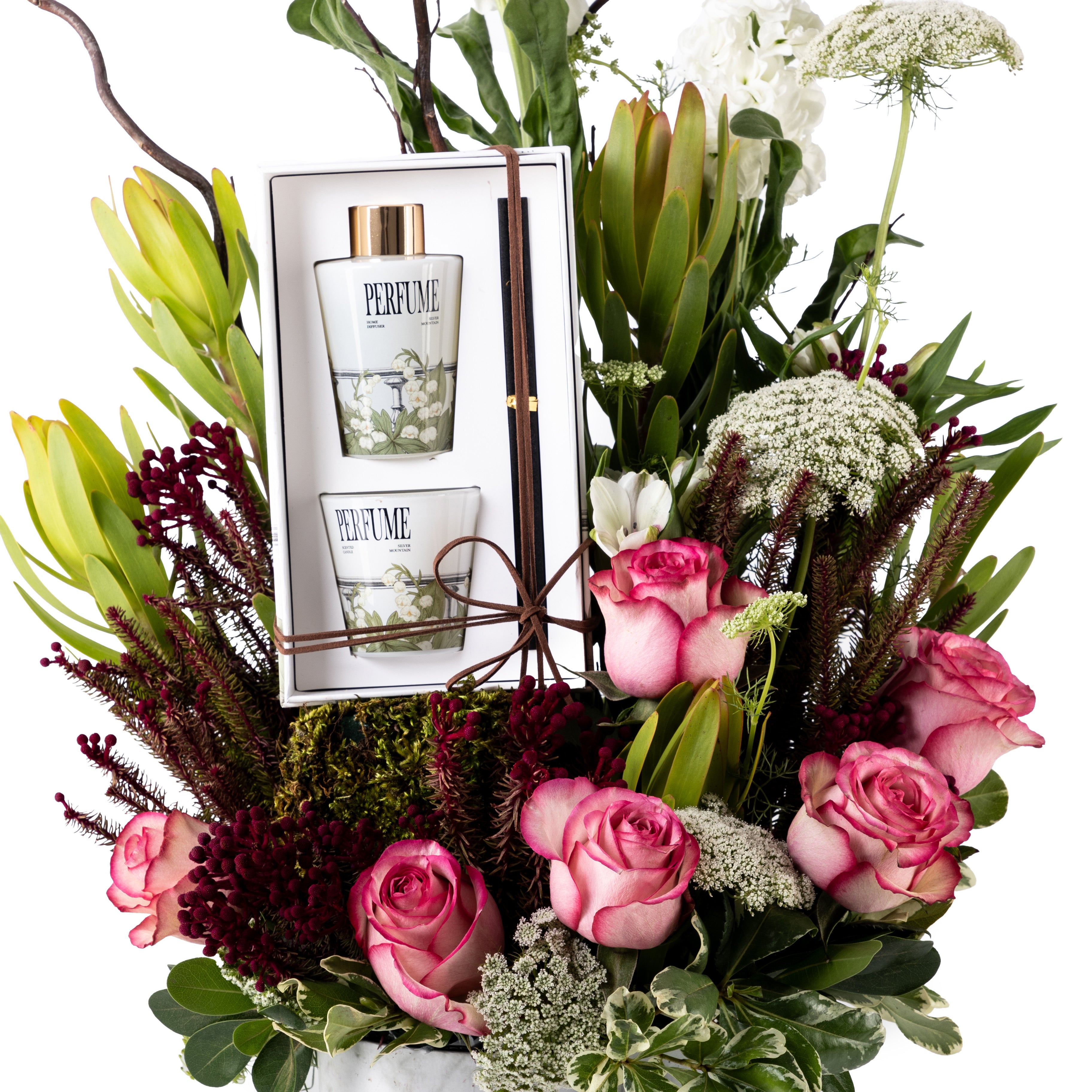 احتفل بإنجازهم بأناقة خالدة. تتضمن مجموعة هدايا التخرج ستاند زهور بتصميم رخامي أبيض مذهل، مع شمعة عطرية مهدئة ودفيوزر منعش. مزيج مثالي من الجمال والاسترخاء، إنها طريقة معبرة لتكريم نجاحهم وإضاءة فصلهم الجديد.
