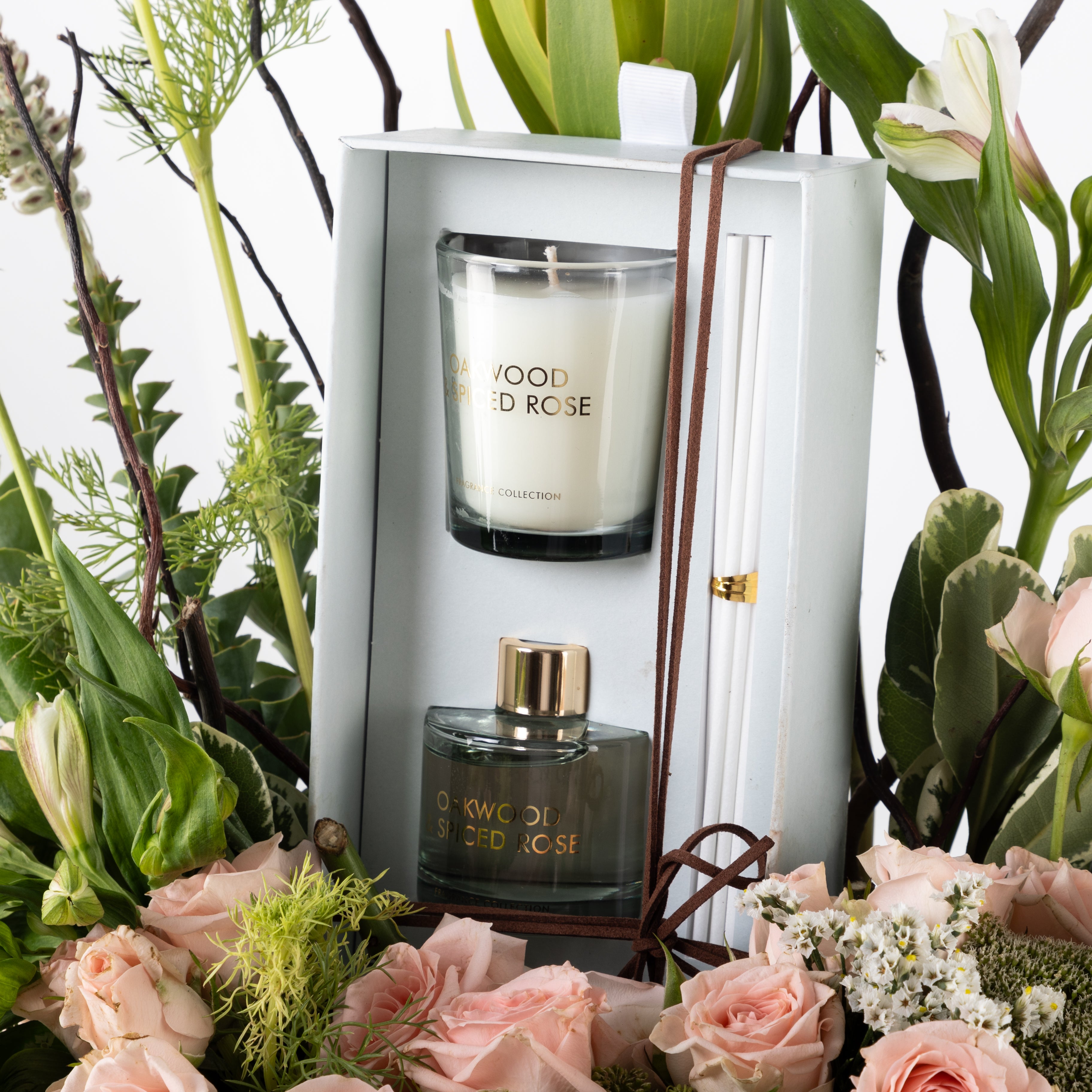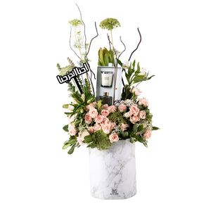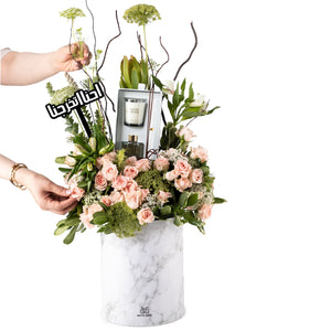 احتفل بإنجازهم بأناقة خالدة. تتضمن مجموعة هدايا التخرج ستاند زهور بتصميم رخامي أبيض مذهل، مع شمعة عطرية مهدئة ودفيوزر منعش. مزيج مثالي من الجمال والاسترخاء، إنها طريقة معبرة لتكريم نجاحهم وإضاءة فصلهم الجديد.