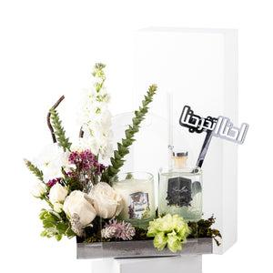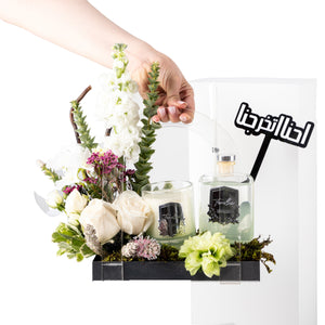 احتفل بتخرجهم بأناقة مع باقة التخرج الأنيقة هذه. تحتوي على زهور داخل علبة أكريليك أنيقة، وشمعة عطرية مريحة، ودفيوزر منعش، لتكون الهدية المثالية للاحتفال ببداية جديدة.