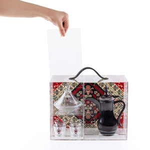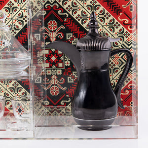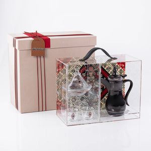 استقبلي ضيوفك بأناقة وكرم ضيافة مع طقم ضيافة السدو المُختار بعناية والمخصص لتقديم القهوة . سُمي بالسدو لأن أستخدامه يوحي بالأصالة و يعطيك الشعور و الأحساس بمتعة الضيافة و كأنك بخيمة خليجية أصيلة ، تجمع هذه المجموعة كل ما تحتاجه لخلق لحظات لا تُنسى، من أول رشفة إلى آخرها. أبهِري زوارك بقطع متناسقة تعكس ذوقك الرفيع وكرم ضيافتك. هذه المجموعة مثالية للتجمعات المنزلية، وحفلات الاستقبال في المكاتب، والمناسبات الخاصة، فهي تحوّل لحظات القهوة العادية إلى تجارب استثنائية. ارتقِي بأسلوب ضيافتك واجعلي كل ضيف يشعر بقيمته الحقيقية.