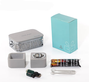 Elevate your incense rituals with a luxurious and distinctive experience through the Rafiq Mabkhar Set. The set features a uniquely designed Mabkhar and a premium leather-wrapped accessories box to neatly store and organize all your essentials.