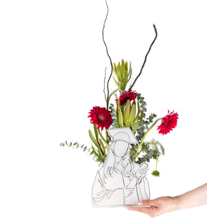 Honor her journey and success with this elegant graduation gift featuring a UV-printed acrylic stand of a graduate woman. The floral arrangement showcases a vibrant gerbera mix, fresh eucalyptus greenery, safari mix, and lush pittosporum, all beautifully arranged in a flower sponge for lasting freshness. A thoughtful tribute to her hard work and bright future.