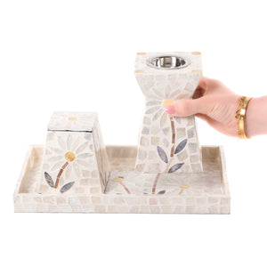 Enhance your home's beauty with the MOP incense burner, paired with an elegant container that can be used to store incense.