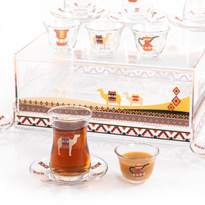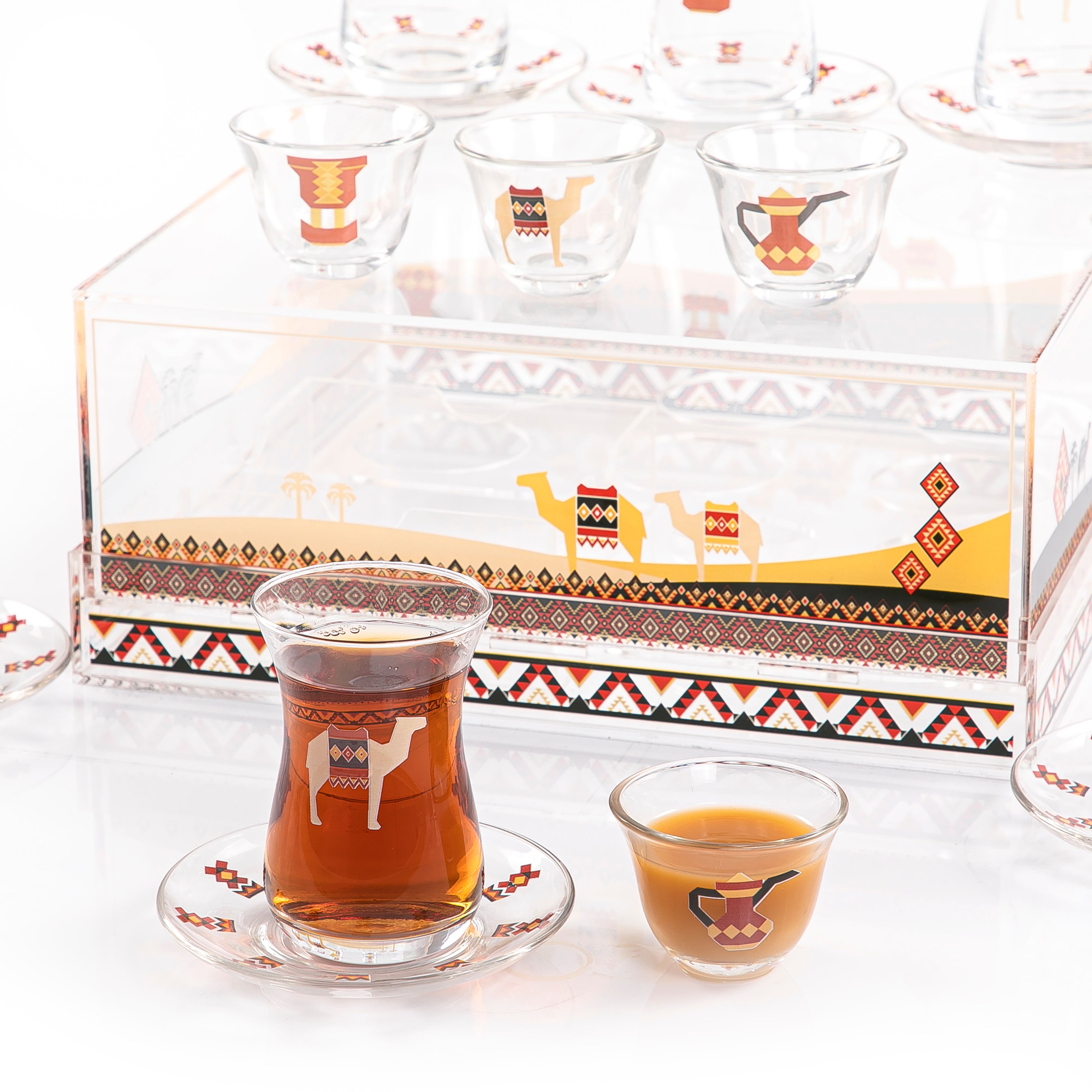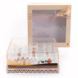 Enjoy your gatherings with the elegant and modern Sadu design serving set, which combines the past and the present. Made from high-quality acrylic, it features beautiful patterns inspired by traditional tents. It is perfect for serving tea and Arabic coffee and is sure to leave a lasting impression on your guests.