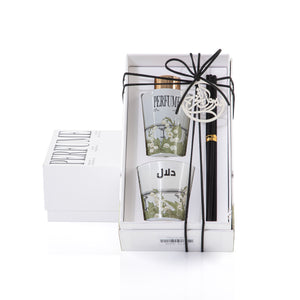 We present to you a luxurious set that combines elegance and functionality, consisting of a scented candle and diffuser to add a warm touch and a fragrant aroma to your home, creating a refreshing atmosphere. It comes in a box, making it ideal for personal use or as an exquisite gift.
