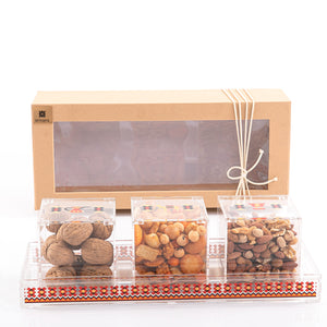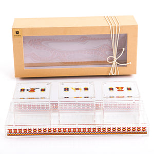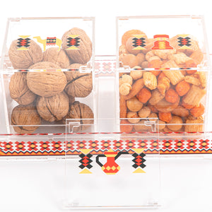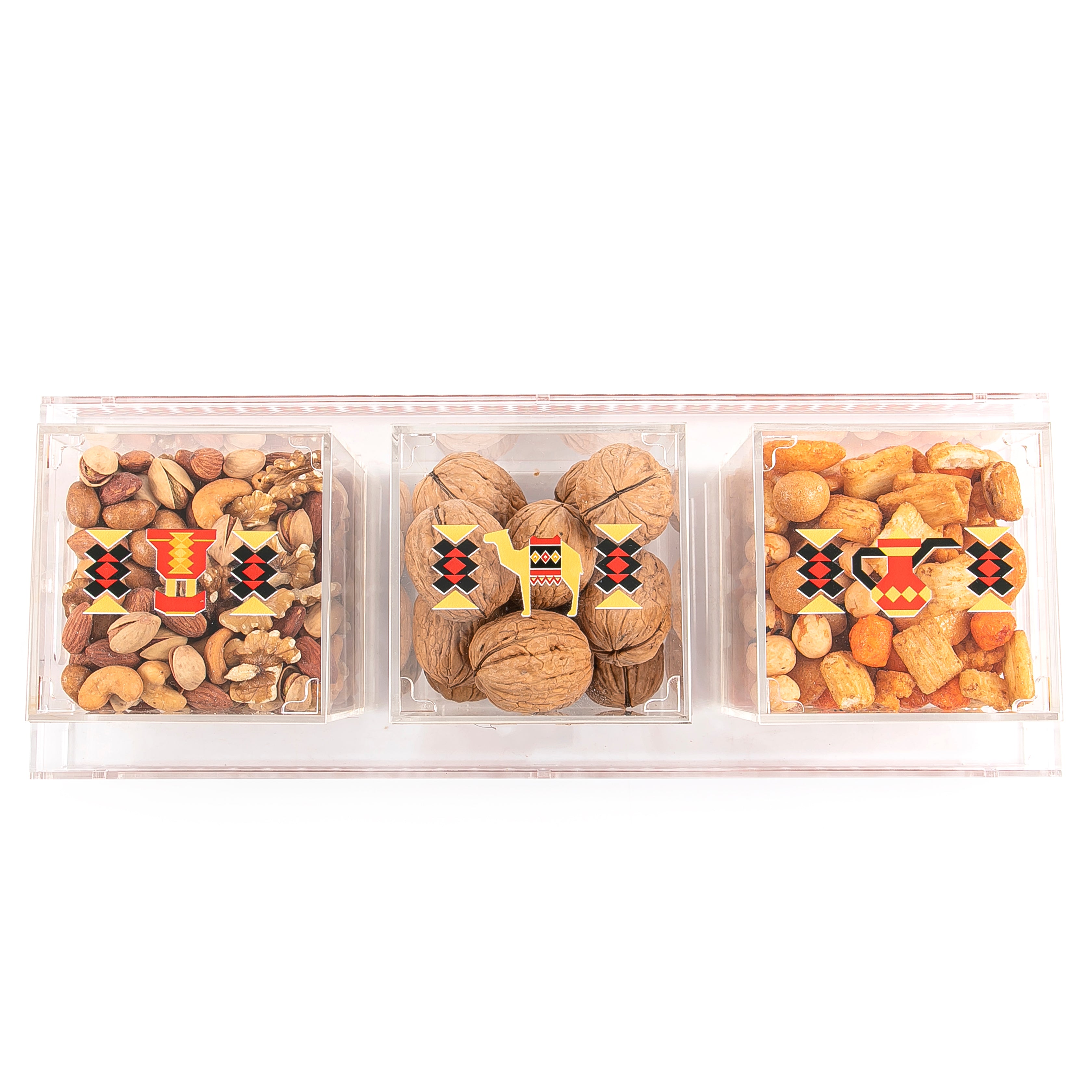 Enjoy your gatherings with the elegant and modern Sadu box set, blending the charm of the past and the present. Made from high-quality acrylic, it features beautiful patterns inspired by traditional tents and desert beauty. Perfect for serving nuts, it’s sure to leave a lasting impression on your guests.