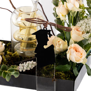 Celebrate their graduation in style with this elegant Floral Graduation Box. Featuring preserved blooms in a chic acrylic case, a relaxing scented candle, and a refreshing diffuser, it’s the perfect gift to mark a fresh new start. Beautiful, thoughtful, and ready to impress!