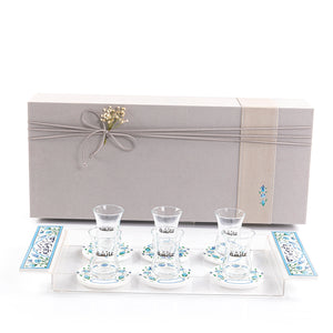 Make your hospitality experience stand out with this stunning tray set that includes 6 elegant glasses. Whether hosting family or friends, this set will be a striking and practical addition to your home.