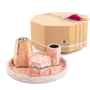 Enhance your home's beauty with a MOP-crafted incense burner, comes with an elegant box that can be used for incense and a matching candle holder — perfect for decorating your space or presenting as a luxurious gift.
