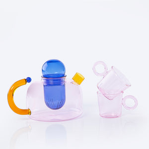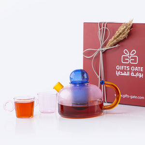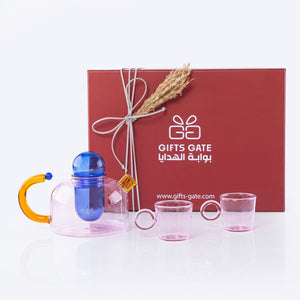 The set includes in : glass pot and 2 glass cups