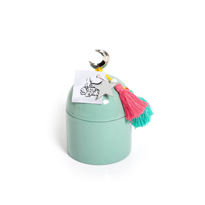 A creatively and elegantly designed Gergean box made from durable metal, featuring a lid decorated with an eye-catching accessory.