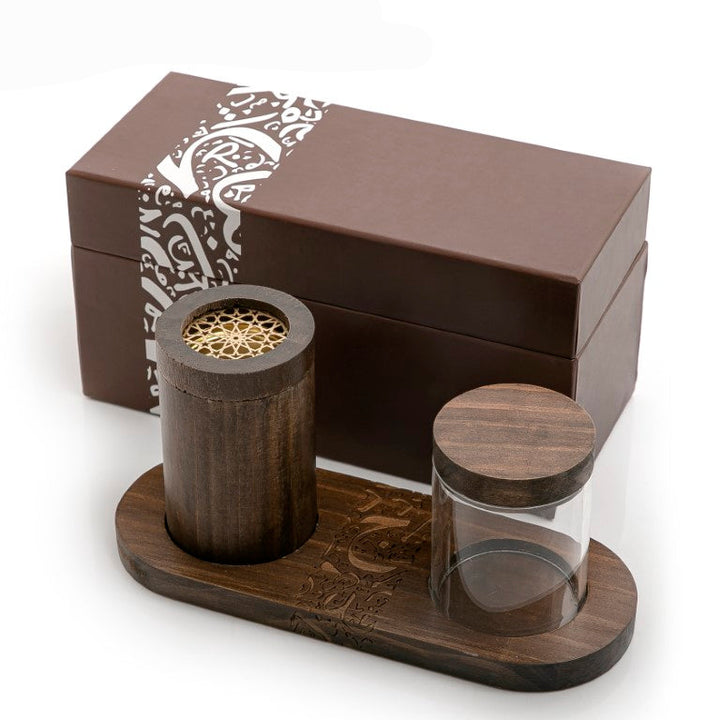 طقم هدية مبخر مع حامل بخور أكريلك بالنقوش العربيه