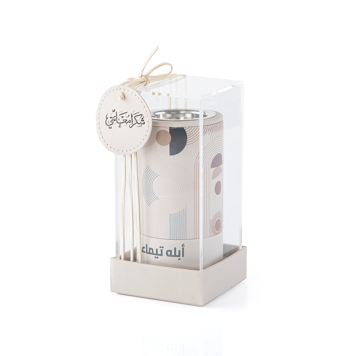 تأتي المبخرة داخل قاعدة من الكرتون المتين ومغطاة بغطاء أكريليك شفاف يحافظ على جودتها ويضفي لمسة راقية، مما يجعلها خيارًا مثاليًا للاستخدام اليومي أو كهدية أنيقة.